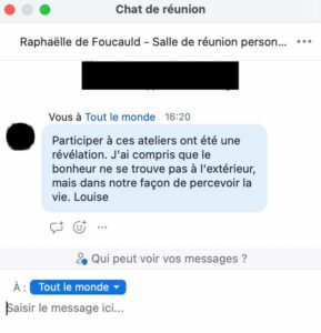 Je n'aime pas les formats en visio, ce n’est pas la même chose que d’être en face à face.